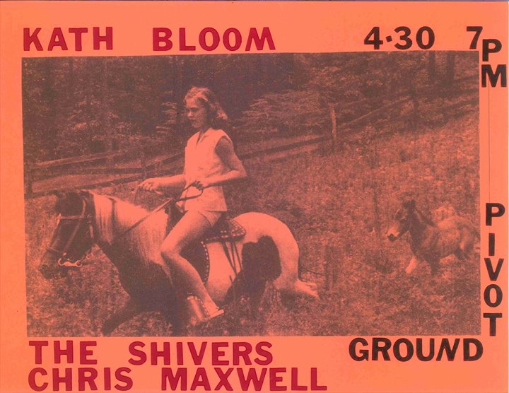 Read MoreThe Pivot Ground Cafe & Work Space is very excited to host the legendary and supreme Kath Bloom, along with The Shivers and Chris Maxwell. Only 50 tickets available so make sure to get yours ASAP! You can purchase tickets for $10 here: http://www.brownpapertickets.com/event/2899623 Kath Bloom (CT) http://www.kathbloom.com/ “Bloom sounds like a woman who has spent years in the wilderness…