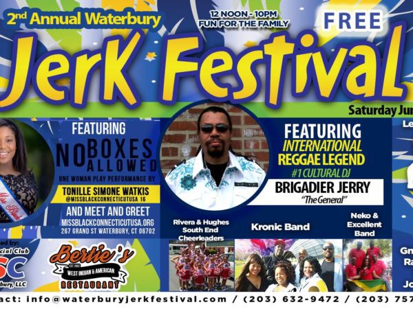 (June 24, 2016) – TheĀ 2nd Annual Waterbury Caribbean Jerk Festival is a free outdoor festival brought to you by Bertie’s West Indian and American Restaurant and the West Indian Social Club of Greater Waterbury (WISCGW). The event will take place tomorrow, Saturday June 25 from 12:00 – 10:00 PM at Library Park – 267 Grand Street in Waterbury CT. The